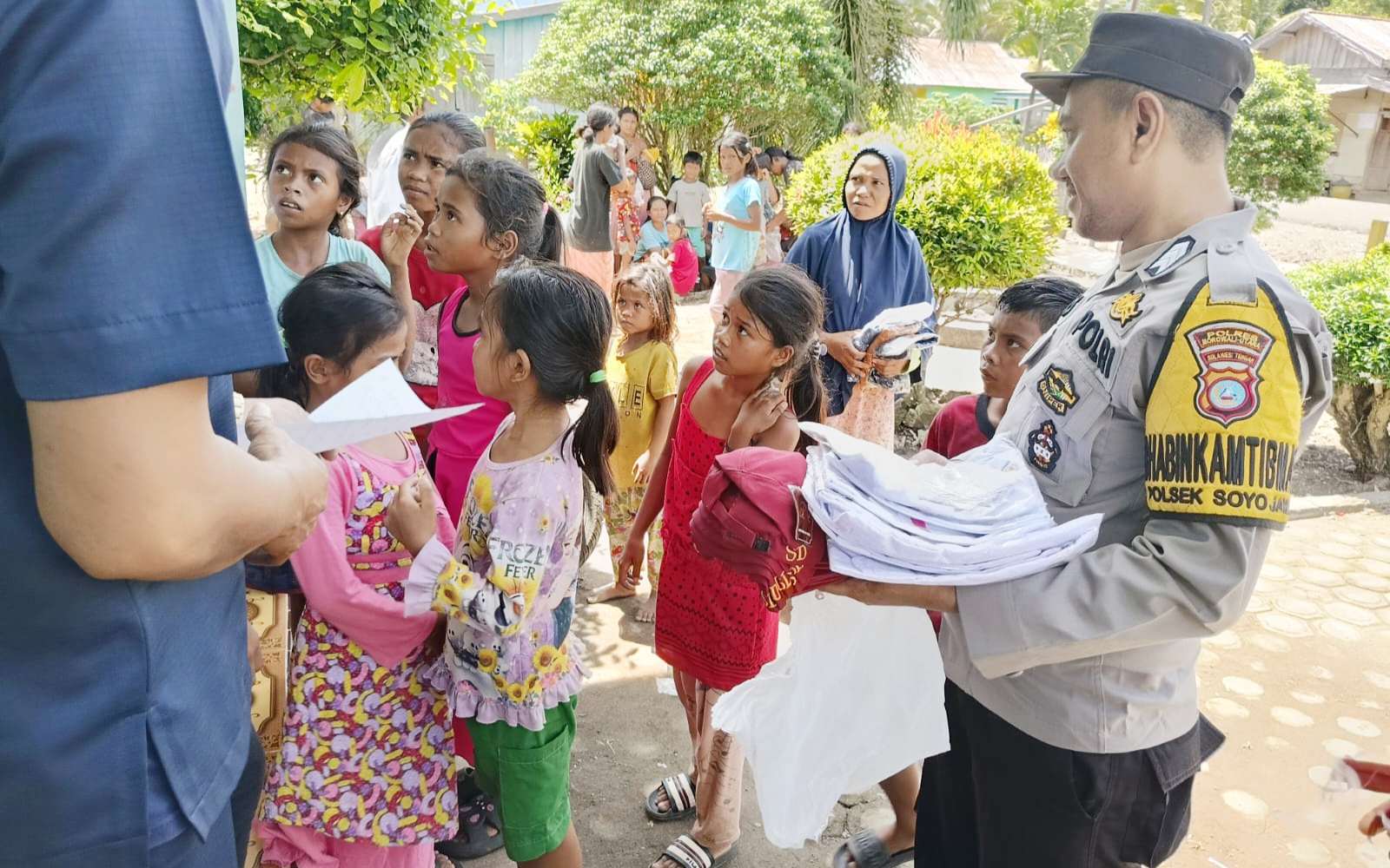 Dalam meringankan beban tersebut. Bhabinkamtibmas Tambayoli Polsek Soyo Jaya membagikan 100 lembar seragam sekolah kepada anak suku Wana. Hal tersebut, sejalan dengan Program Polres Morowali Utara Berbagi.