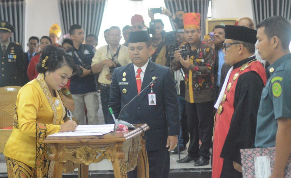 Sementara diruang Sidang Utama di Gedung Banua Mpogombo Siwagi Lemba Bupati Poso Darmin Agustinus Sigilipu secara resmi melantik 30 orang anggota DPRD Poso yang terpilih pada Pemilu 2019.