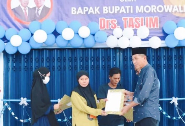 𝐌𝐎𝐑𝐎𝐖𝐀𝐋𝐈- Bupati Morowali, Drs. Taslim meresmikan Gedung Pasar Rakyat Emea yang berada di Kecamatan Witaponda, SulawesibTengah (Sulteng) Peresmian gedung pasar itu ditandai dengan pengguntingan pita, pada Jumat (26/5/2023).