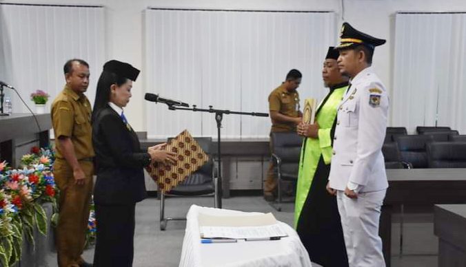 POSO- Sekretaris Kabupaten (Sekkab) Poso Heningsih Tampai melantik Fikri Mardjun, SSTP, sebagai Camat Poso Kota Utara, di Ruang Pogombo Kantor Bupati Poso, Senin (05/02-24).