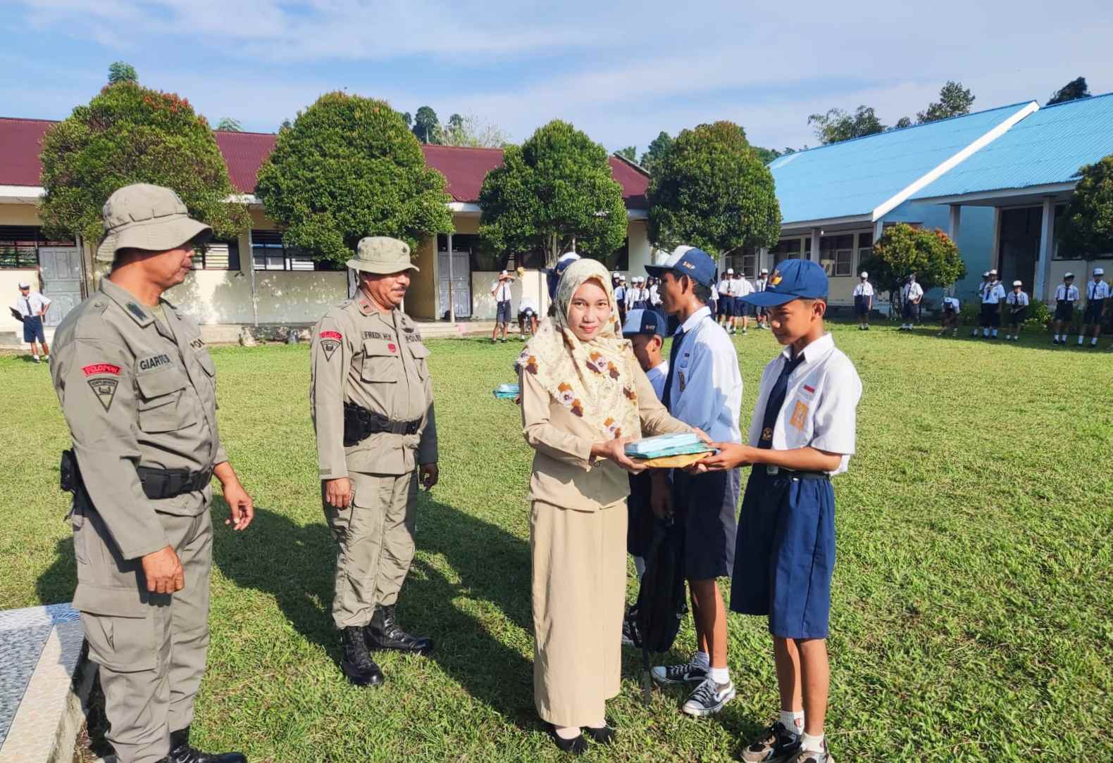 Para siswa terlihat antusias menerima bantuan tas dan alat tulis, sementara pihak sekolah mengapresiasi langkah Satgas Madago Raya yang dinilai peduli terhadap dunia pendidikan.