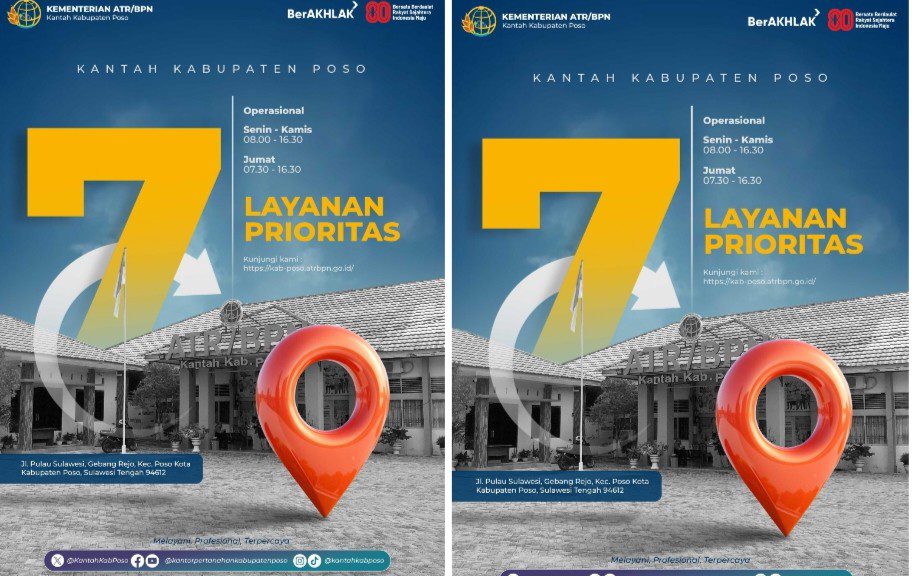 POSO– Meningkatkan kualitas layanan pertanahan, Kementerian ATR/BPN lewat Kantor Pertahanan (Kantah) Poso meluncurkan 7 Layanan Prioritas yang dirancang khusus untuk memberikan kemudahan, kecepatan, dan kepastian hukum bagi masyarakat.