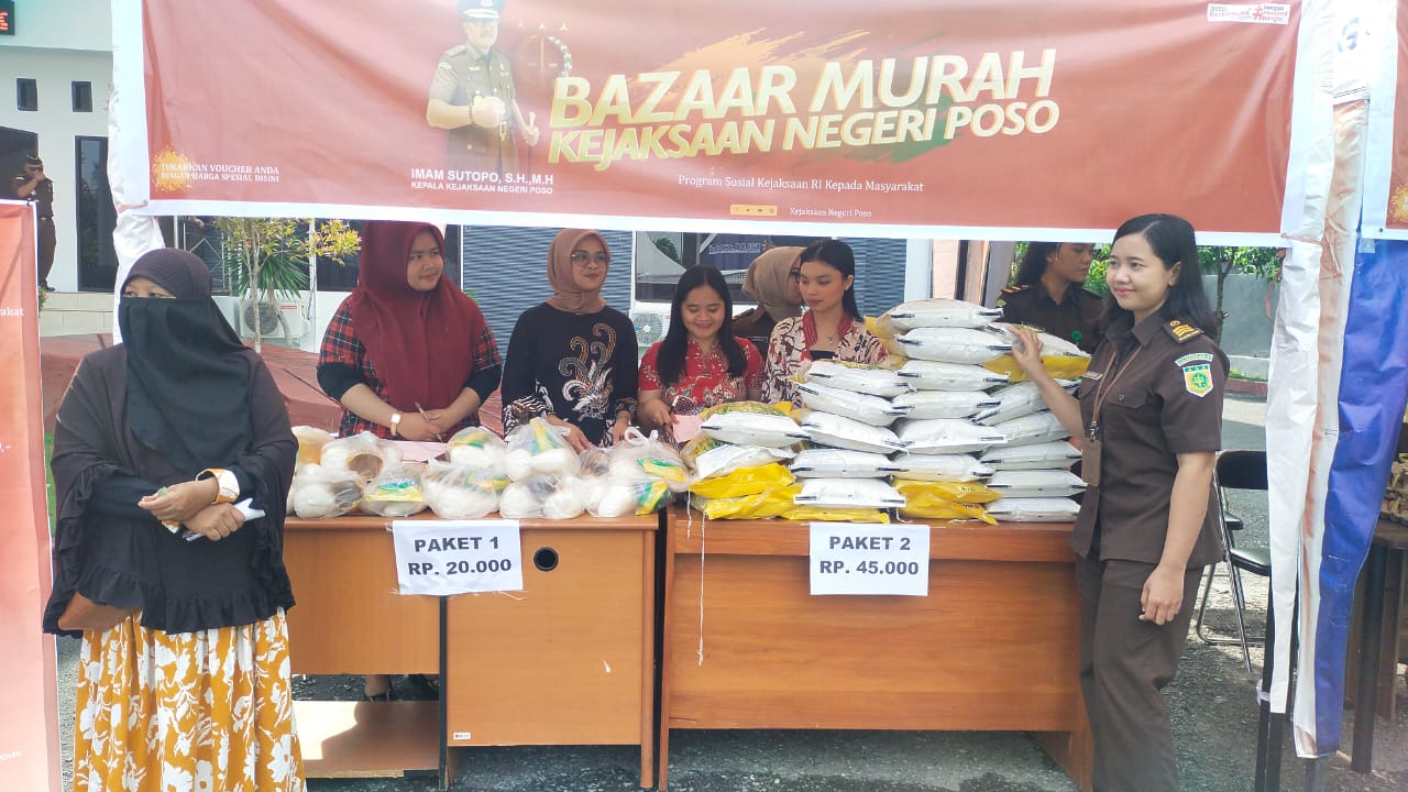 Kajari Poso Imam Sutopo mengatakan, Bazaar pasar murah yang digelar ini adalah program menyeluruh yang dilaksanakan serentak di wilayah hukum Kejaksaan Tinggi Sulteng termasuk di lingkungan Kejari Poso.