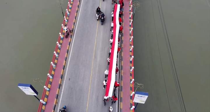 ๐ฃ๐ข๐ฆ๐ข๐๐๐ก๐.๐๐ข๐ - Semarak Peringatan HUT ke 77 Kemerdekaan RI, Toyota Poso Gelar Seli 45 dan pembentangan bendera Merah Putih sepanjang 45 Meter. Pembentangan tersebut dilakukan di Jembatan Utama Poso jalan Trans Sulawesi di wilayah Poso Kota dan di TMP wilayah Poso Kota Selatan, Rabu (17/08-22).