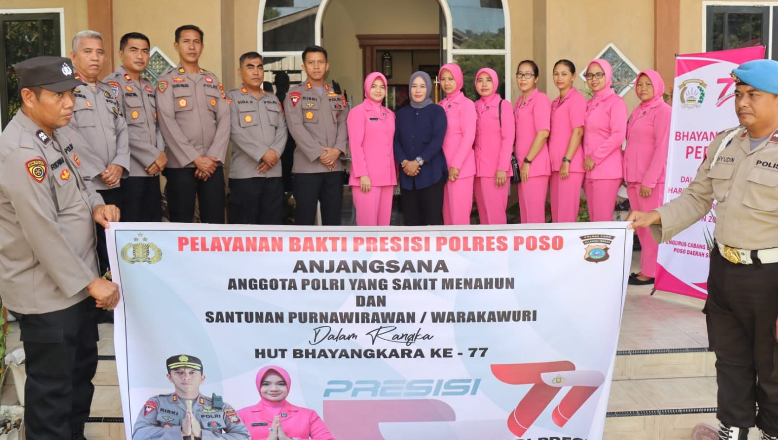 Kapolres Poso AKBP Riski Fara Sandhy, S.I.K, M.I.K, beserta Pejabat Utama (PJU) dan Bhayangkari membawa bantuan sosial berupa paket sembako untuk meringankan beban kehidupan para pensiunan Polri dan anggota Polri yang sedang mengalami sakit yang berkepanjangan.