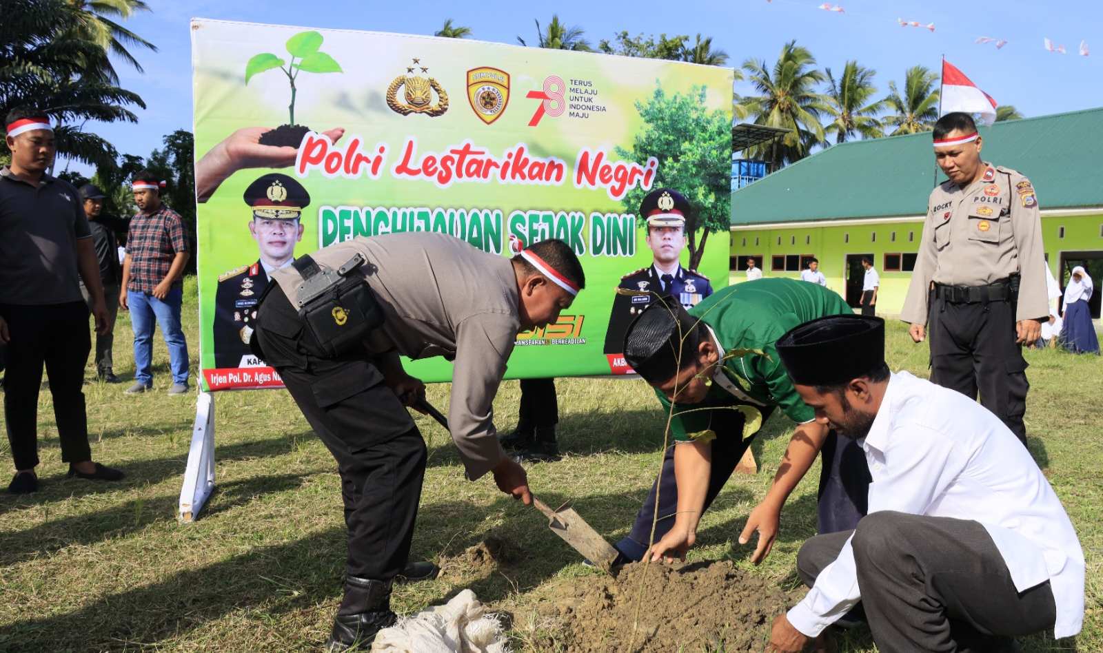 Kegiatan menanam pohon serentak tersebut merupakan bentuk kepedulian terhadap lingkungan dengan tema Polri Lestarikan Negeri Penghijauan Sejak Dini.