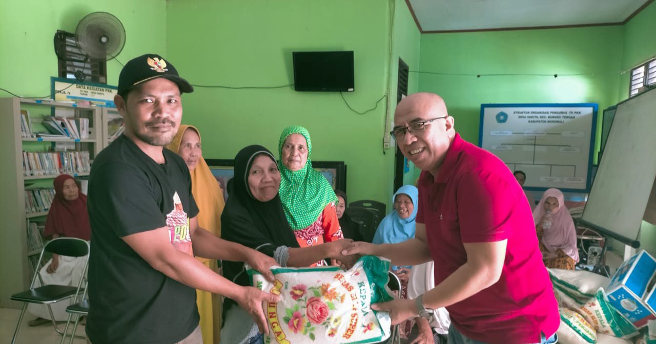 𝐌𝐎𝐑𝐎𝐖𝐀𝐋𝐈- Perusahaan Pertambangan Nikel Site Lalampu Morowali PT Fadlan Mulia Jaya (FMJ) sharing bersama Forum Kepala Tekhnik Tambang (F-KTT) Sulawesi Tengah menbagikan puluhan karung beras kepada sejumlah janda tua di Desa Sakita, Bungku Tengah, Morowali, Sulteng, Sabtu (10/6/23).