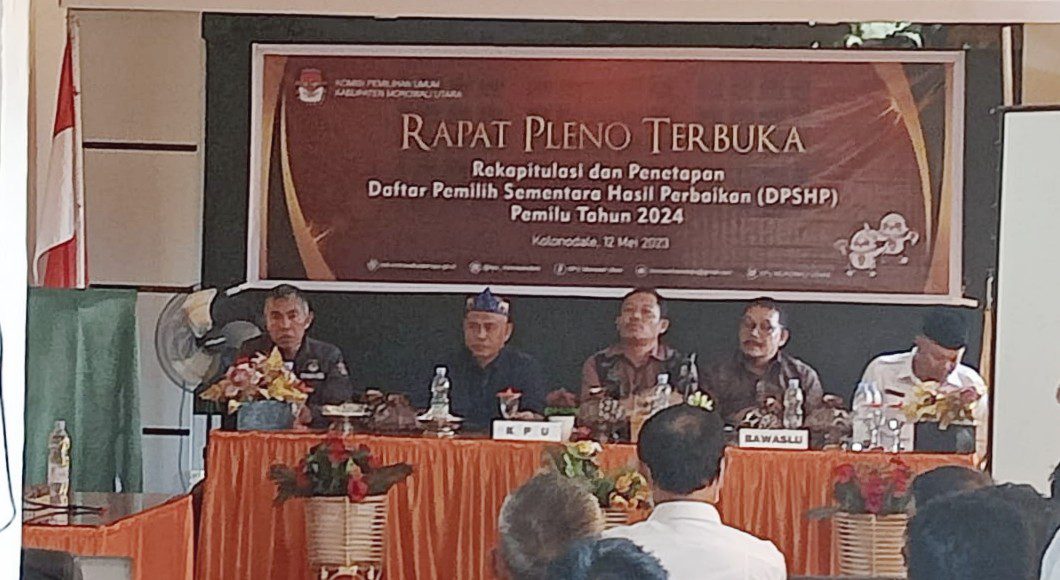 ๐ ๐ข๐ฅ๐จ๐ง- KPU Kabupaten Morowali Utara (Morut) menggelar Rapat pleno Terbuka Rekapitulasi dan Penetapan Daftar Pemilih Sementara Hasil Perbaikan (DPSHP) Pemilu Tahun 2024, di Aula Hotel Naila Kolonodale, Sulawesi Tengah, Jumat (12/05-23).