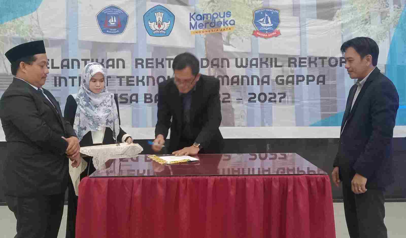 𝗣𝗢𝗦𝗢𝗟𝗜𝗡𝗘.𝗖𝗢𝗠- Rektor Institut Teknologi Amana Gappa (INTAG) Makassar, Dr. Abdul Aziz Muslimin, S.Ag, M.Pd, M.Pd.I, resmi dilantik menakhodai kampus untuk lima tahun kedepan 2022-2027, di Baruga Angin Mamiri Makassar, Minggu (04/09-22)