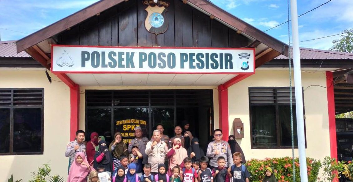 Kegiatan pemberian bantuan kelengkapan sekolah bagi anak-anak yang terdampak operasi penegakkan hukum dilaksanakan di Mako Polsek Poso Pesisir.