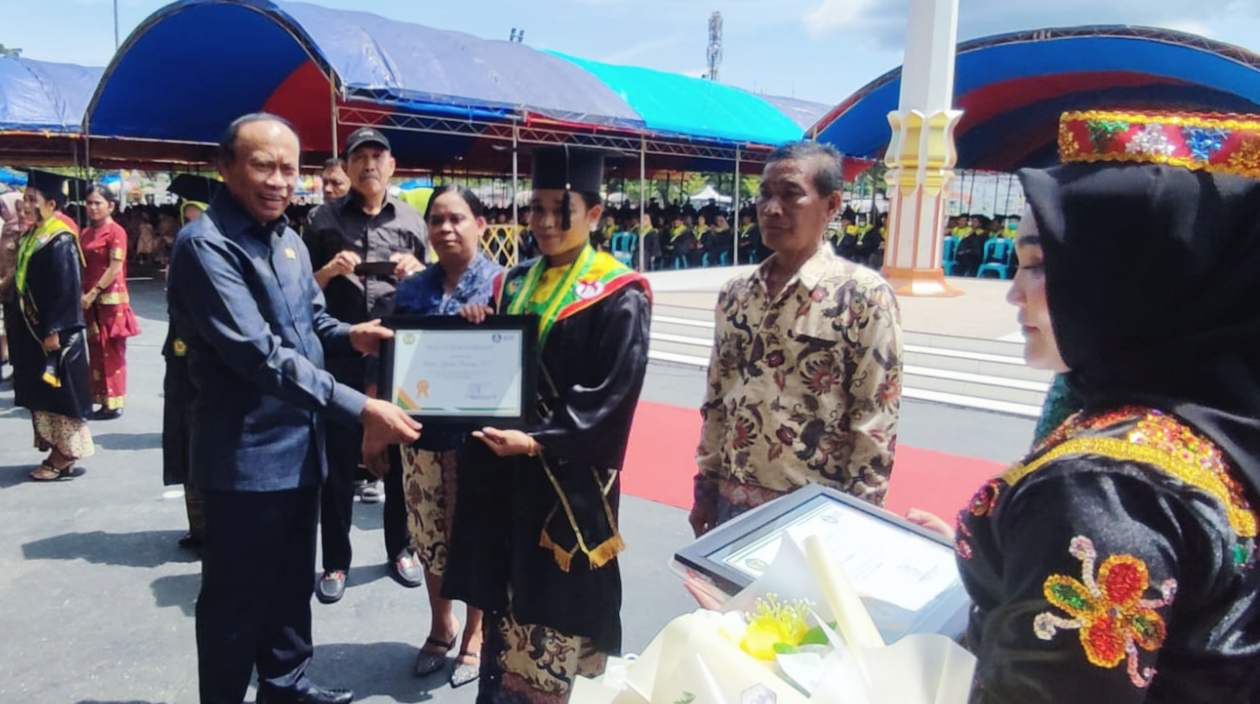 𝗣𝗢𝗦𝗢𝗟𝗜𝗡𝗘.𝗖𝗢𝗠- Anggota DPR RI Fraksi Partai Golkar, H. Muhidin Mohamad Said, S.E., M.B.A selain membawakan orasi ilmiah juga memberikan penghargaan dan penghormatan kepada orang tua dan dosen yang memiliki peran penting sehingga bisa berada di salah satu titik puncak dari pencapaian dalam dunia pendidikan.